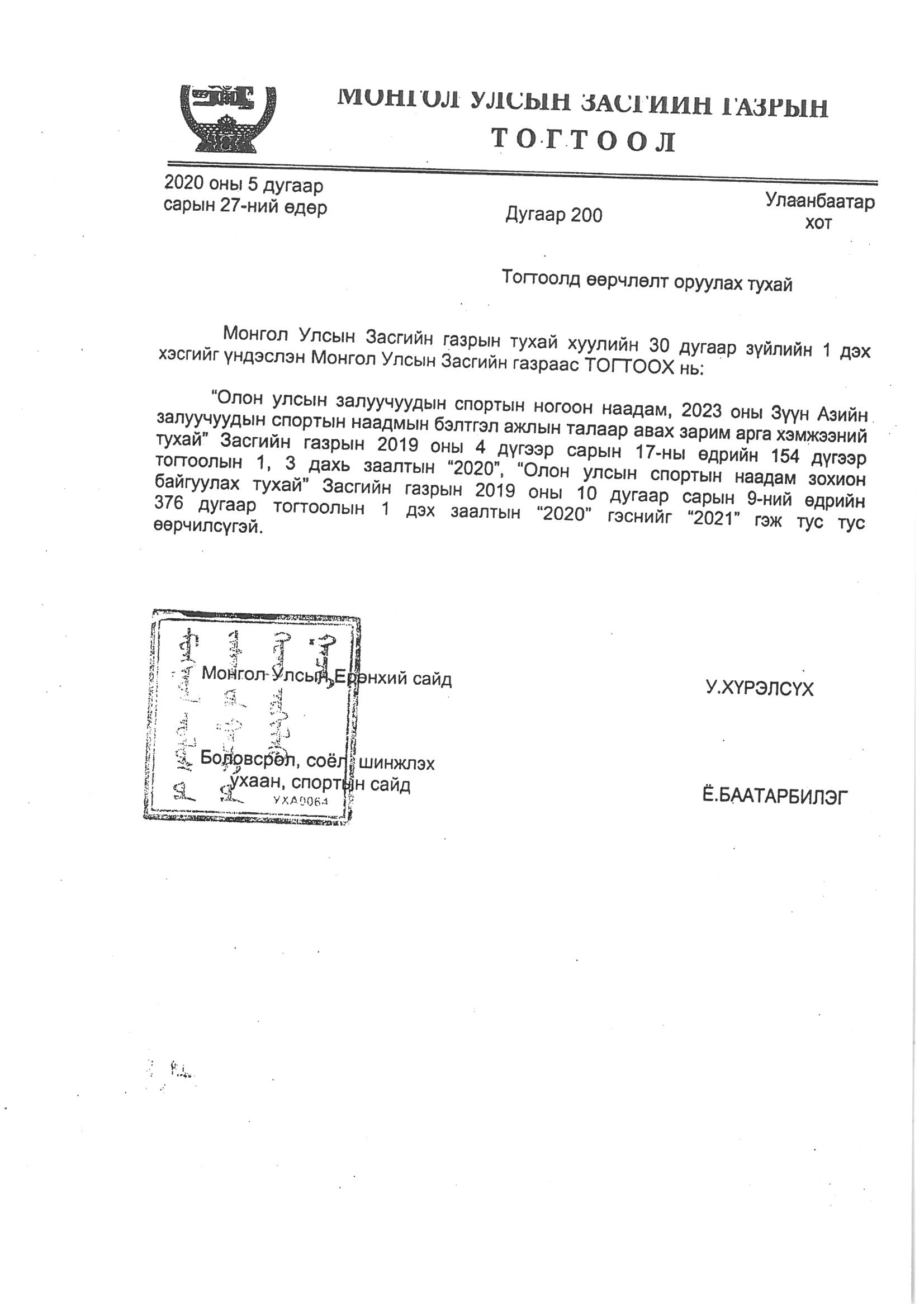 Зүүн азийн залуучуудын наадам зохион байгуулах тухай